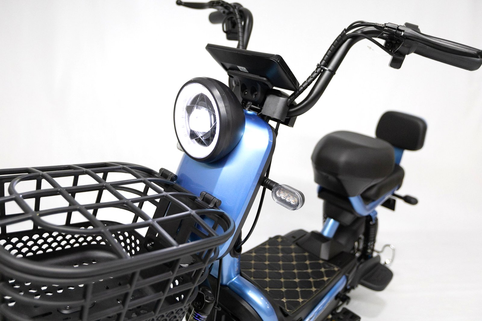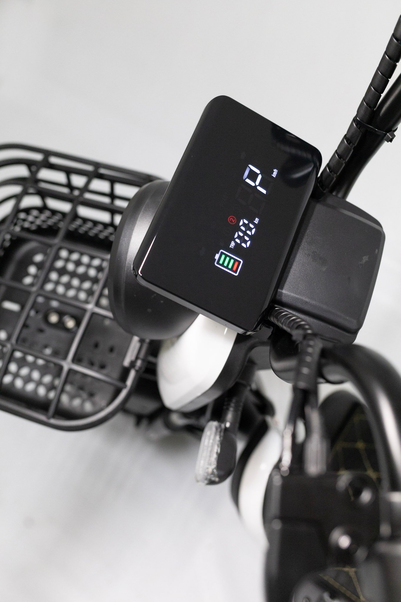 Velocidade: 32km/h, suporta 100kg, roda até 50km e gasta R$0,50 na conta de energia.